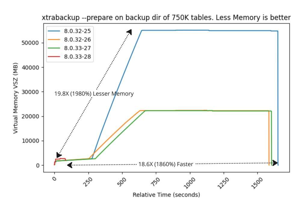 • Crashes the XtraBackup prepare operation if the backup directory contains a huge number of tables/IBD files.