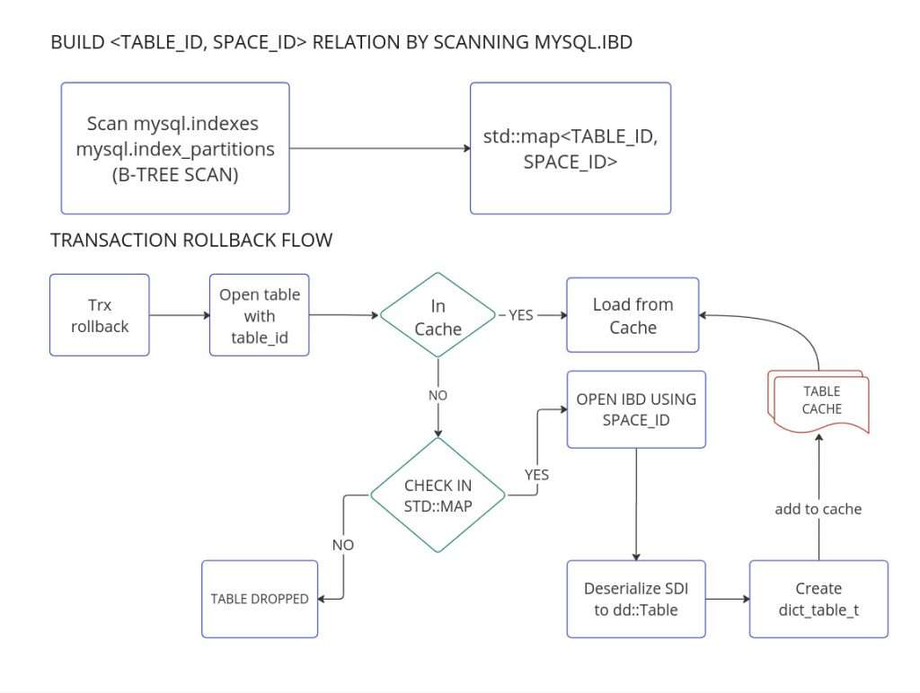 After this relation table_id→space_id is established, it will be used during transaction rollback. In this new design,  user tables are loaded only if there is a transaction rollback on them.