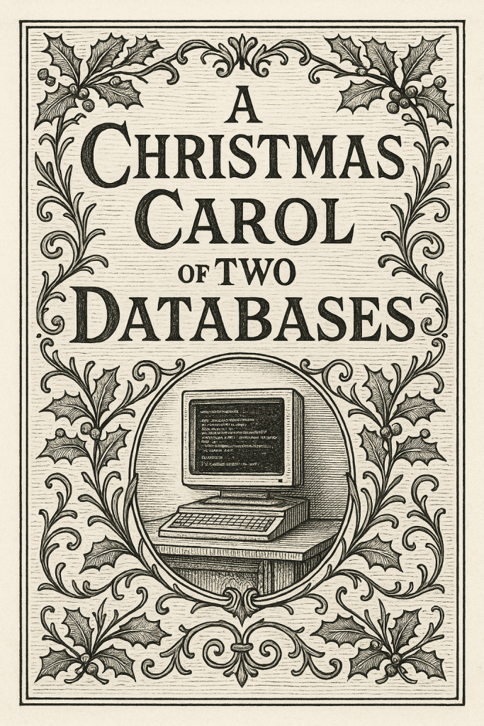 It was a cold, dark, and CPU-bound night. The wind blew fierce across the datacenter racks, and the disks did rattle in their trays like bones. Ebenezer Scrooge, Senior Database Administrator (Level III, self-certified), sat hunched o’er his terminal, lit only by the ghostly glow of Vim. He was a man of bytes and bits, parsimonious with his time, and proud — oh, so proud! — of never once taking a backup.