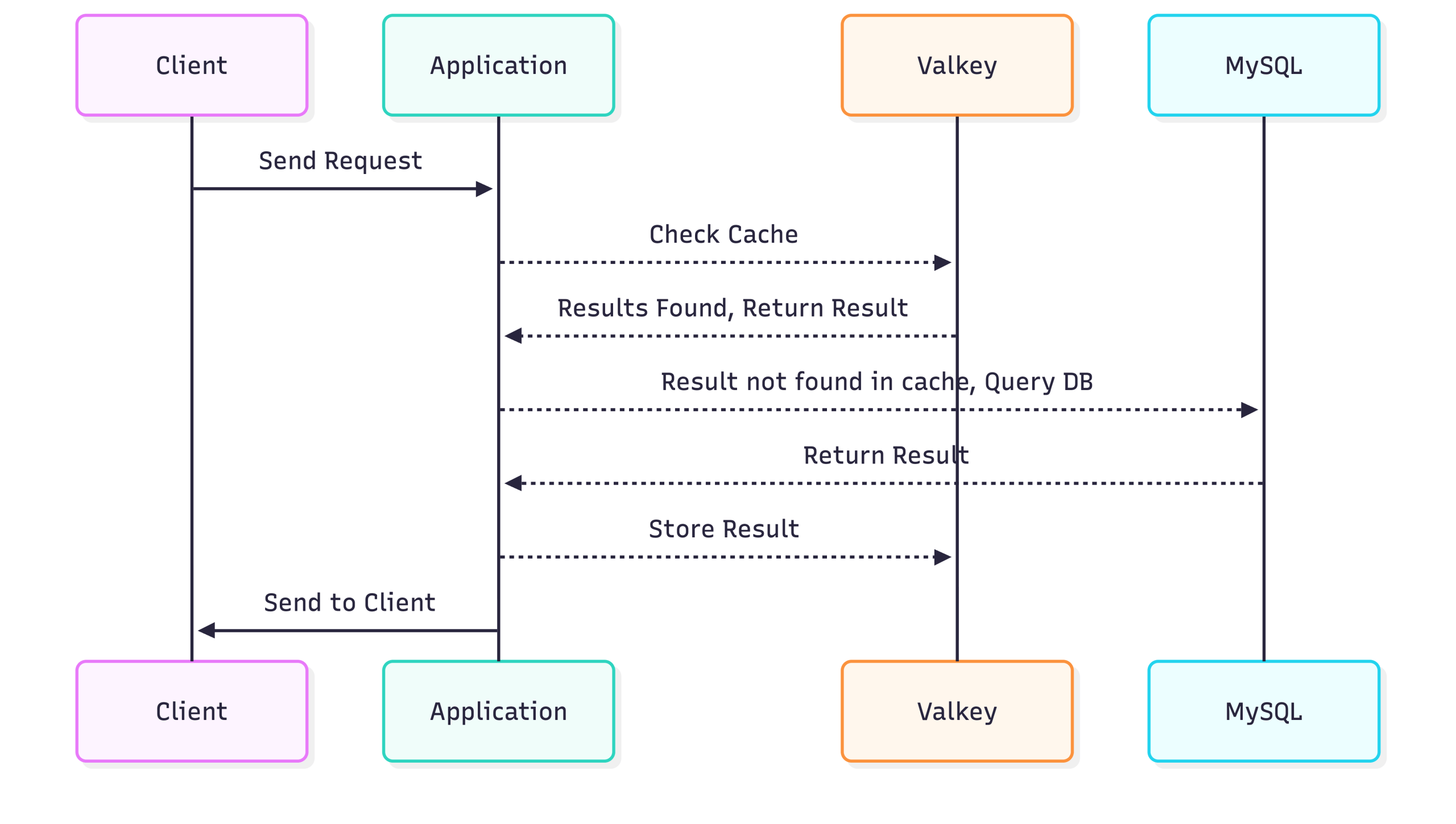 Application(172.31.68.72)<br> |<br> |-- MySQL client --> Percona Server (172.31.67.228)<br> |<br> |-- Valkey client --> Valkey Server (172.31.22.118) |