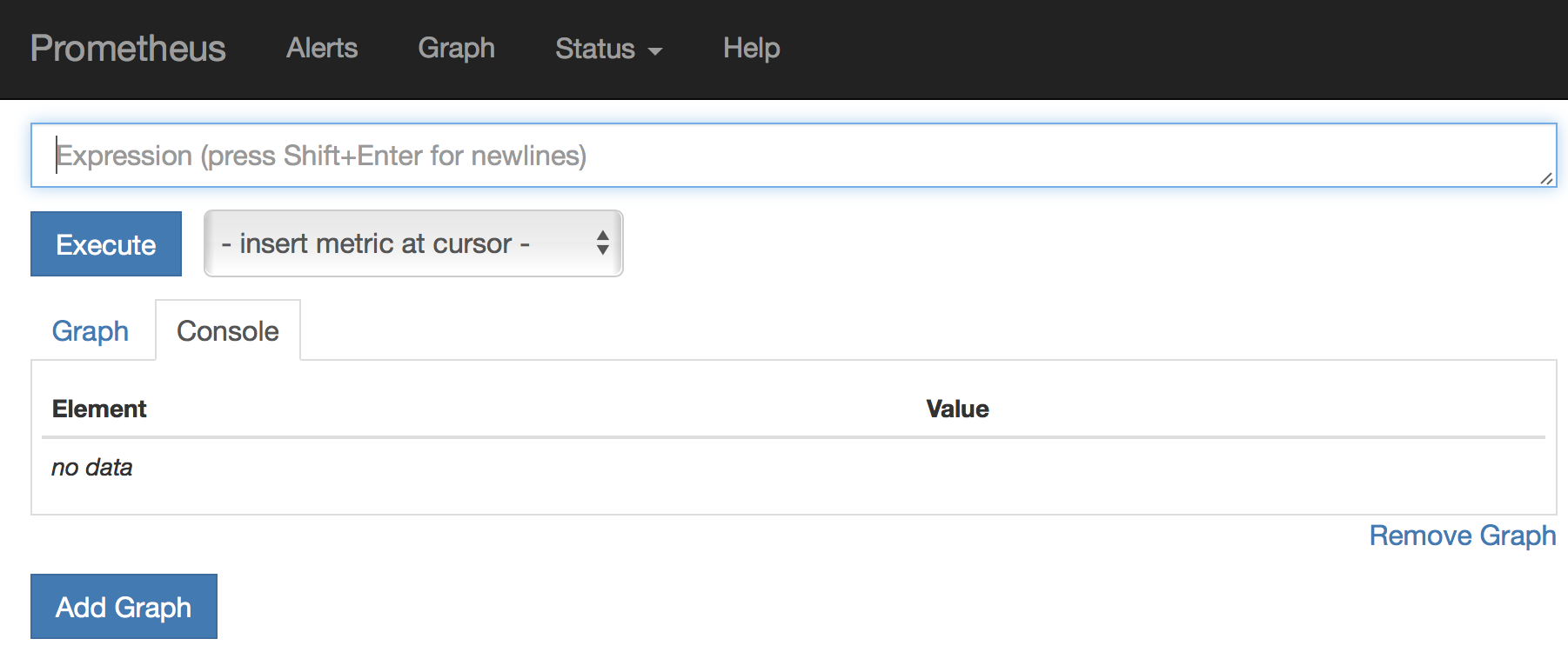 What do we need for the query? In this case, it is a metric, a label and a time range. Every PMM deployment has access to the Prometheus console by adding “/prometheus” to the URL. The console is incredibly helpful when playing with queries. The console looks like this: