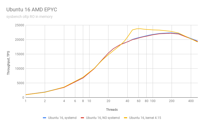 Ever since AMD released their EPYC CPU for servers I wanted to test it, but I did not have the opportunity until recently, when Packet.net started offering bare metal servers for a reasonable price. So I started a couple of instances to test Percona Server for MySQL under this CPU. In this benchmark, I discovered some interesting discrepancies in performance between  AMD and Intel CPUs when running under systemd .