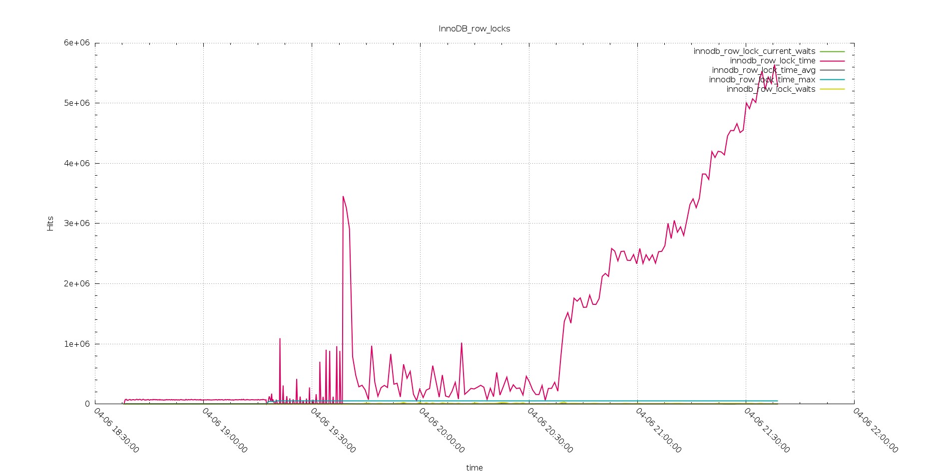As you can see from the above, the exactly same workload generated an increasing lock row time, from quite low in the test with 256 threads, up to a crazy high with 2048 threads.