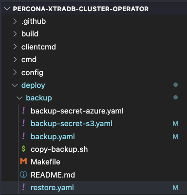 Navigate to the deploy/backup directory in the same repository we cloned. Here, we find the necessary files for backing up and restoring.