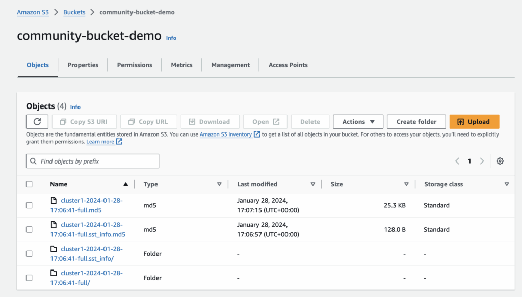 If the status shows succeeded, it means our backup was successful! Now, let’s take a look at our bucket on Amazon S3. Wohoo!! We have a backup ready in S3!