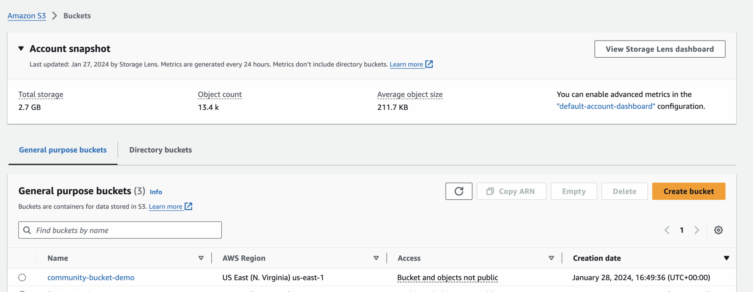 For this demo, ensure you have a bucket in Amazon S3. Additionally, your AWS user account should have the ‘AmazonS3FullAccess’ permission to fully manage S3 buckets.