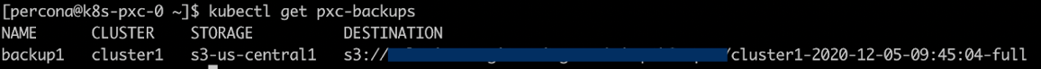 Like the PVC method, when an S3-based backup job is launched, the PXC Operator will launch a new Pod that will connect to the PXC as a 4th member and will start an SST. The SST is streamed from a donor node as an xbstream to the configured S3 endpoint using xbcloud. The purpose of xbcloud is to download and upload a full or part of xbstream archive to or from the cloud.