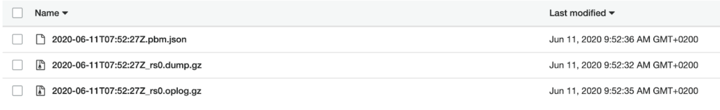 Backups taken by the PSMDB Operator can be stored in any S3 compatible storage, be it AWS S3, Google Cloud Storage, or locally deployed cloud-native MinIO storage. The backup contains a metadata file, a dump of all collections from your database, and an oplog dump covering the timespan of the backup.