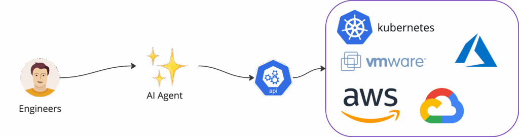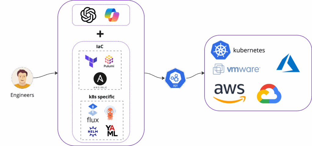 The next level of simplification for platform engineers is within AI Agents, which will integrate directly with APIs of cloud providers or other infrastructure tools, like Kubernetes. IaC code will be either replaced or mixed with human language. Now instead of declarative tooling, it will be done through a normal language.