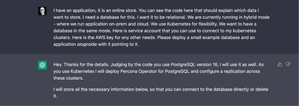 Maintenance is what bothers me with today’s fancy no-code tools. You can create an application using human language, but what is next? How do you maintain the code going forward? The same applies to platform engineering—how do you maintain the infrastructure? For database-specific aspects, how do I know that my data is safe, secure, and consistent?