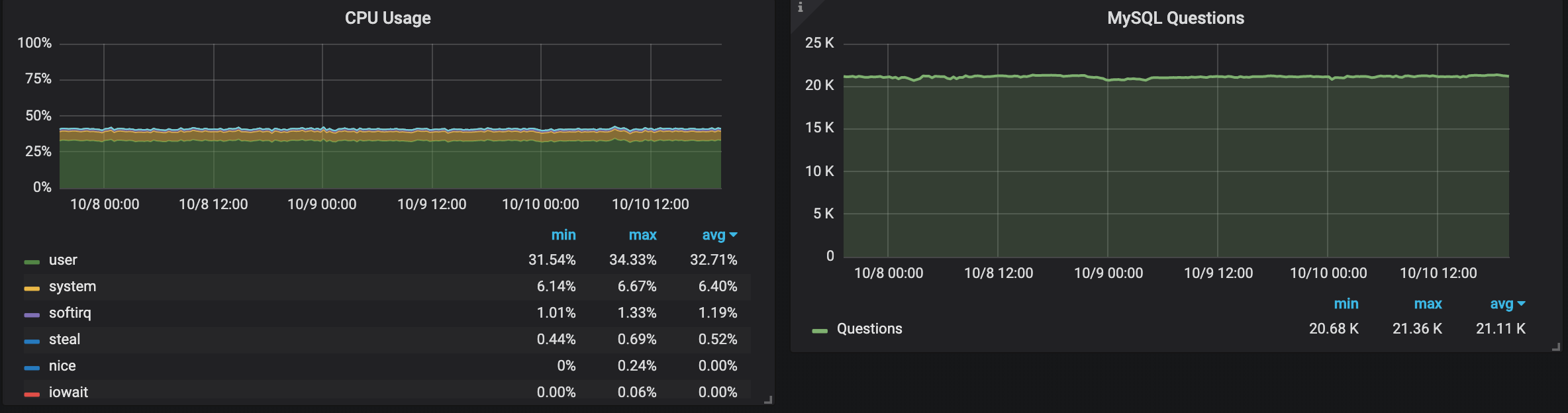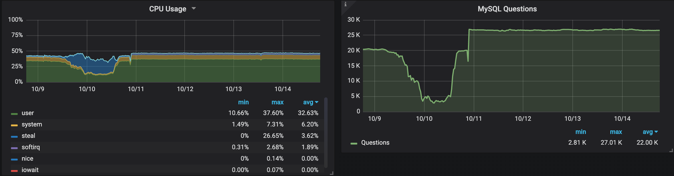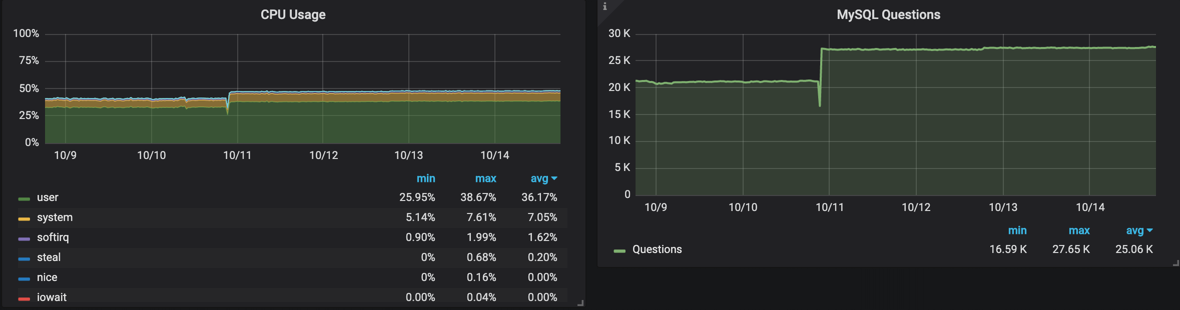As you can see, the Query Per Second could go down by almost 90%, which is a lot. It’s important to highlightthat the sysbench script should have generated a very steady workload. So what is this big difference? After checking all the graphs I found this: