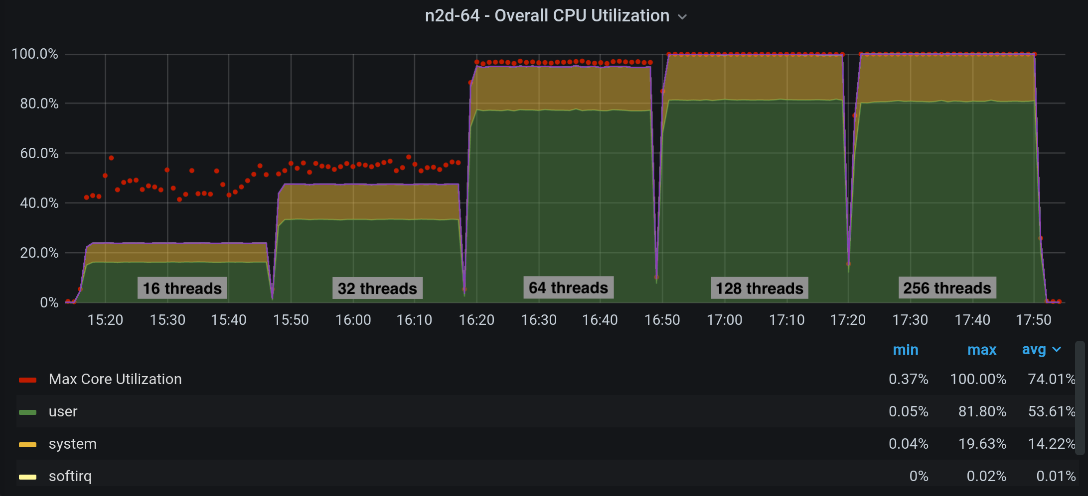 | Threads/Instance | N1-64 | N2-64 | N2D-48 | N2D-64 |