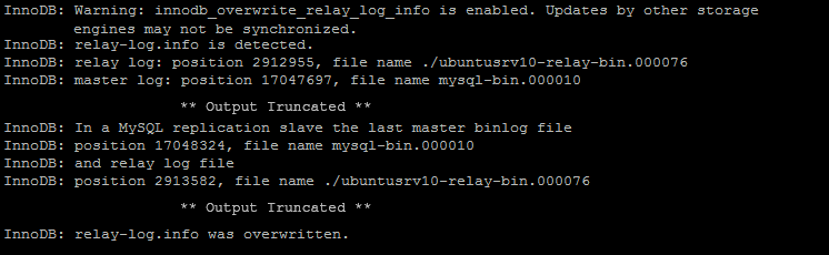 And if the slave relay-log.info already has the correct information and has been synchronized with the disk after the crash, this will also appear in the error log.