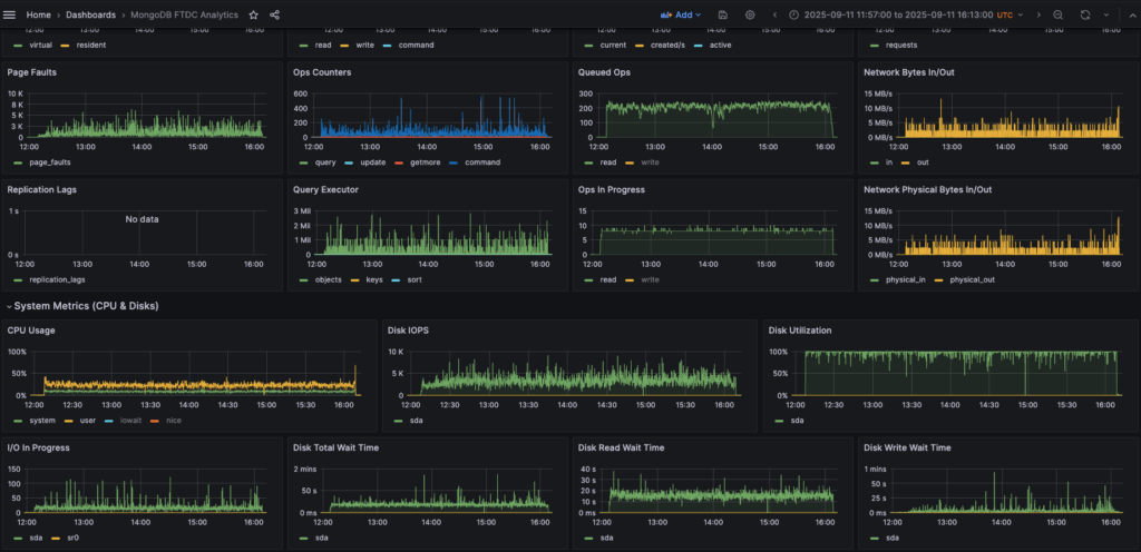 To create the tests for this post, I provisioned 2 VMs in Percona’s internal cloud: the first with 4 CPUs and 8 GB RAM (easily stressable), on which I installed Percona Server for MongoDB (PSMDB) v8.0.8 (the latest available to date); and the second with 16 CPUs and 32 GB RAM, on which I installed Mongosh 2.5.6 to serve as a client.