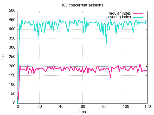 We got a consistent result through all three scenarios. In all of them, the workload levering on the index-only scan performed about 2.25x more transactions per second (tps) than the workload going via the index scan.