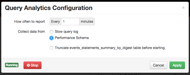 Click “Apply” and about two minutes later you’ll have query metrics from Performance Schema, collected and sent every minute.