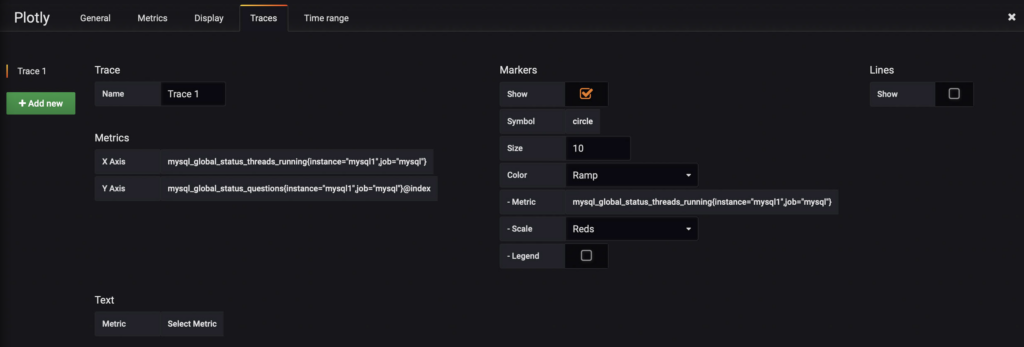 Then, we need the actual “Traces” for Plotly. Those are based on the metrics. We just need to assign the axis: