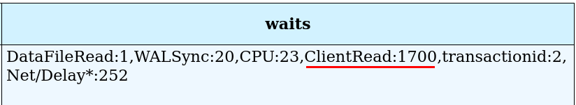 But as the network slows down, the “ClientRead” becomes increasingly important. Following is the information from the same pgbench transaction workload over a slower network.