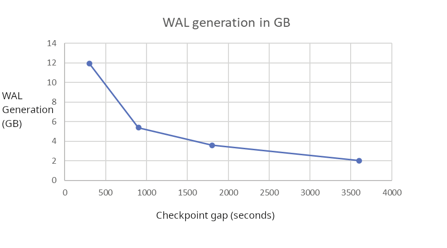 - max_wal_size : This is the maximum size target for PostgreSQL to let the WAL grow between automatic checkpoints. So if a small value of this parameter can trigger frequent checkpoints. Such frequent checkpoints will further amplify the WAL generation due to FPI as mentioned earlier, causing further knock-down effect. So this value should be set such that the PostgreSQL holds sufficient WAL files between two planned checkpoints.
