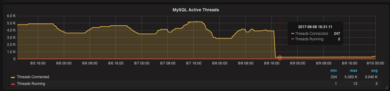 We can see that the vanilla install of ProxySQL also reduced active threads significantly: