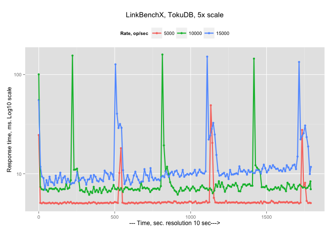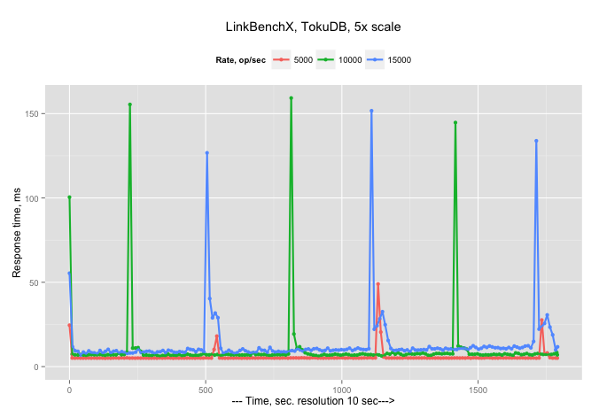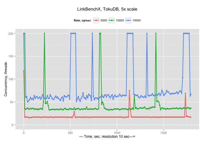 An idea for a benchmark based on the “arrival request” rate that I wrote about in a post headlined “Introducing new type of benchmark” back in 2012 was implemented in Sysbench. However, Sysbench provides only a simple workload, so to be able to compare InnoDB with TokuDB, and later MongoDB with Percona TokuMX, I wanted to use more complicated scenarios. (Both TokuDB and TokuMX are part of Percona’s product line, in the case you missed Tokutek now part of the Percona family.)