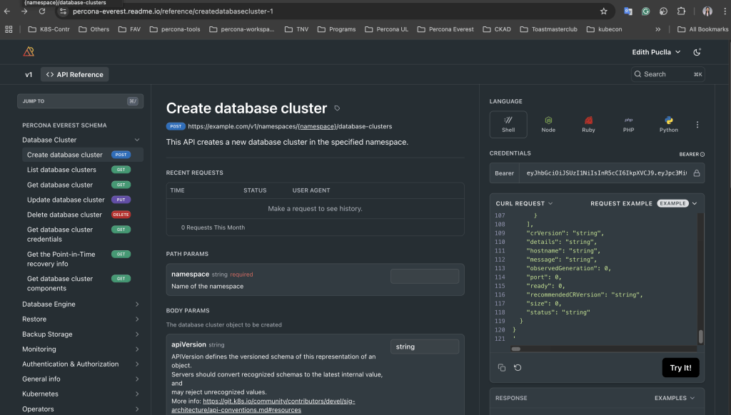 One of the best things about working with the Percona Everest is its excellent, beginner-friendly documentation, which includes APIs. You can explore it here: Percona Everest API Reference.