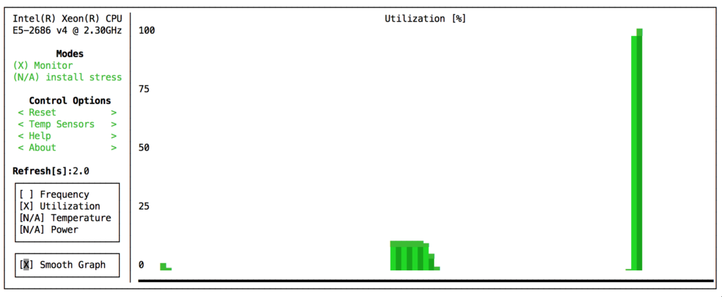 The following graph shows CPU utilization during the execution with 4 threads and 32 threads:
