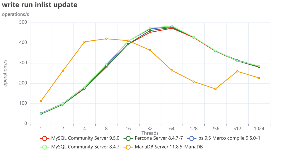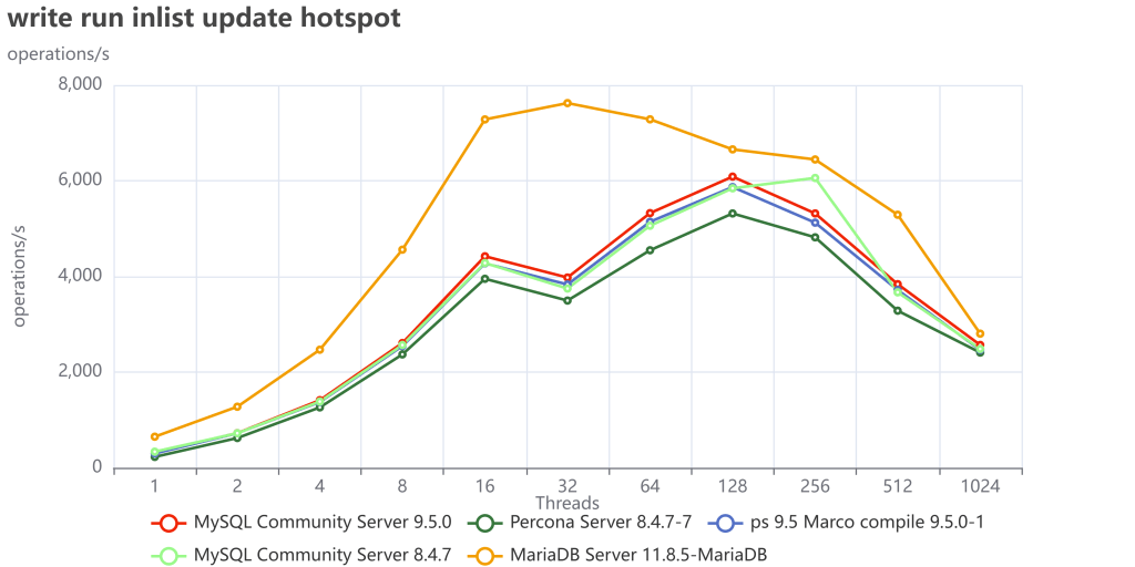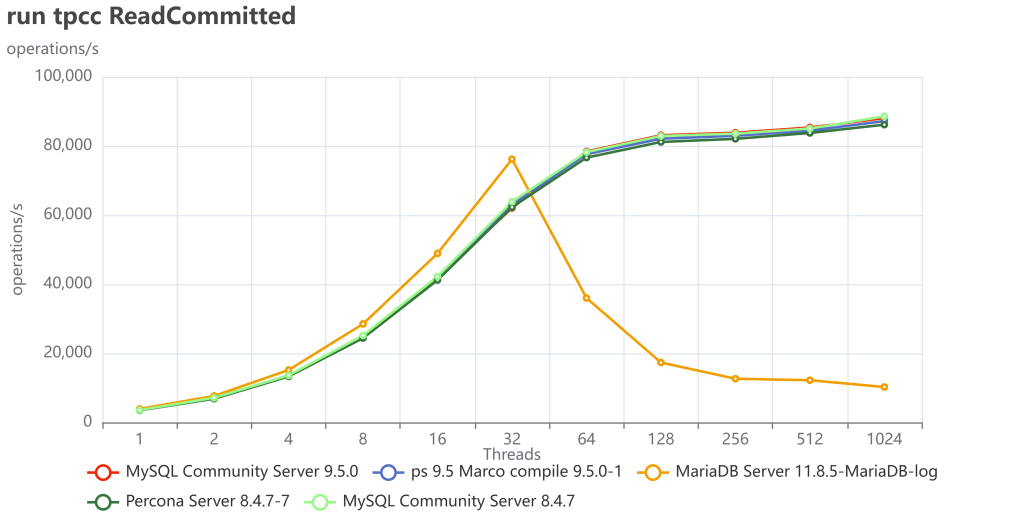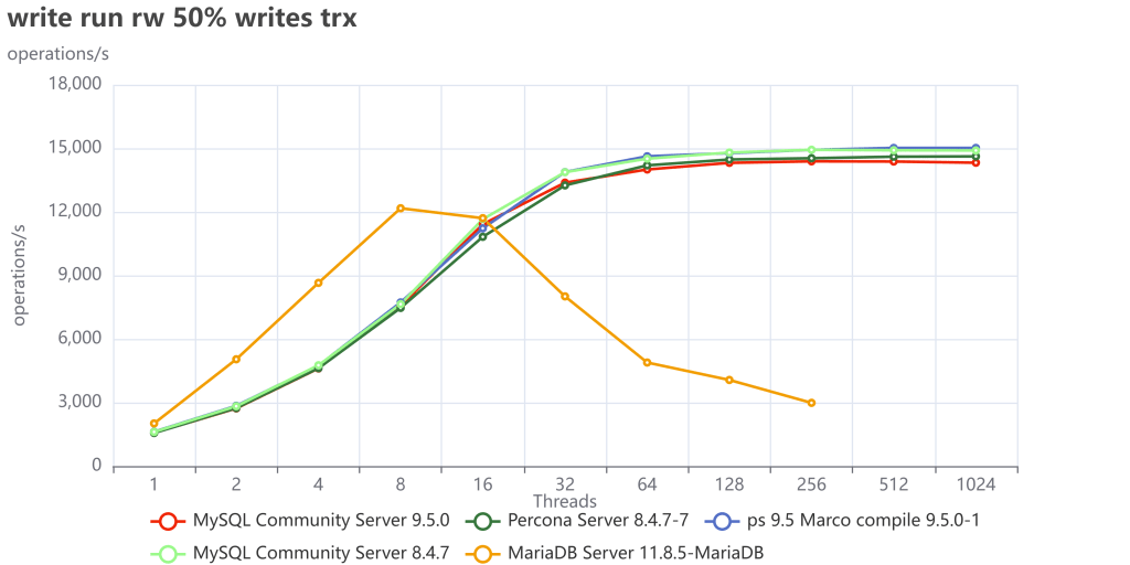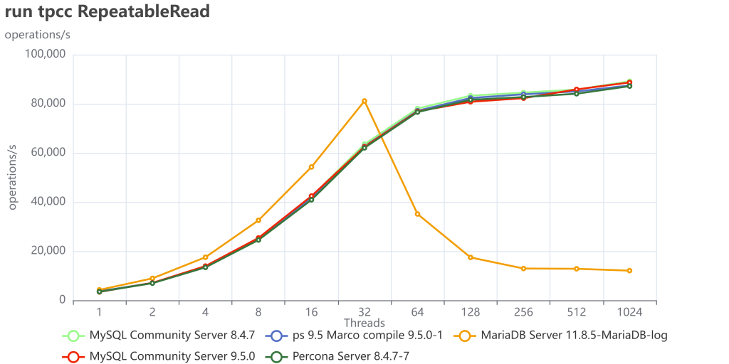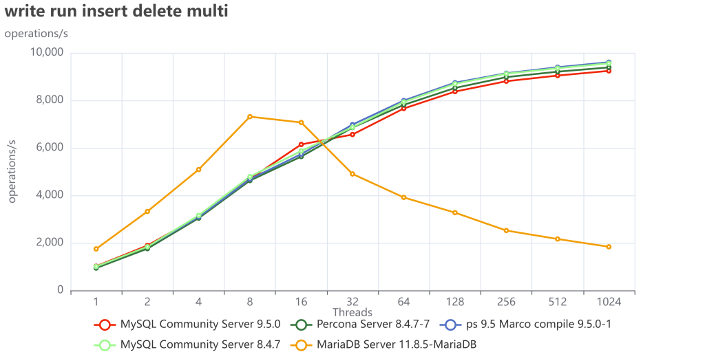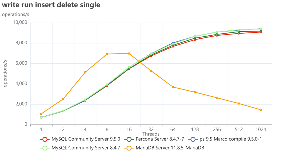 Let us now add MariaDB 11.8.5 and stay focused on MySQL/Percona 8.4 and 9.5