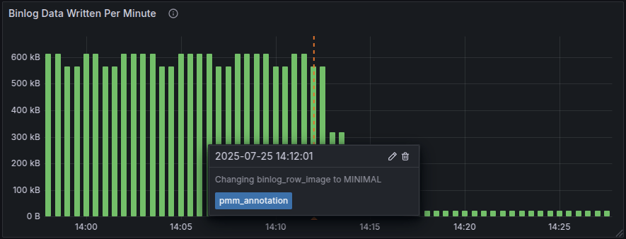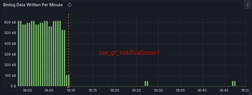 Below is an illustration of how enabling this feature changes the binlog write volume as compared to the default settings: