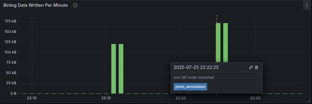To illustrate the impact better, let’s visualize (using Percona Monitoring and Management (PMM)) how the binlog writes volume increases as we add 8.4 router instances to the environment. In the graph below, there were two 8.0 routers initially, and then three more 8.4 router instances were added: