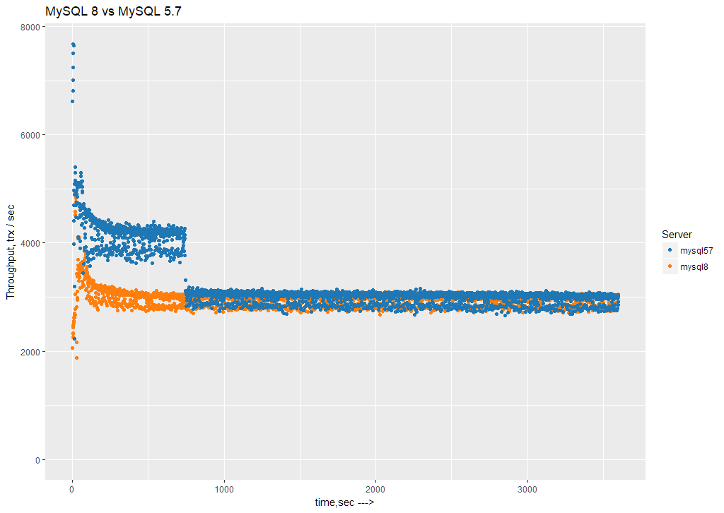 First, let’s review the results for MySQL 8 vs MySQL 5.7