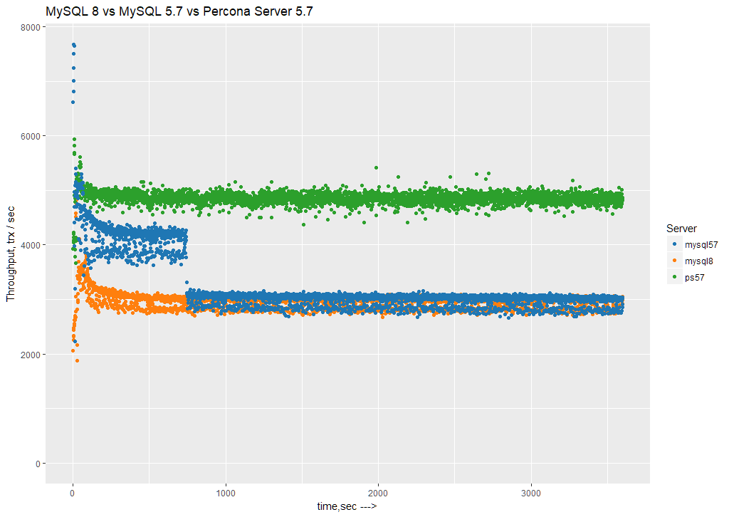 So let’s see how MySQL 8.0 performed with these settings, and compare it with MySQL 5.7 and Percona Server for MySQL 5.7.