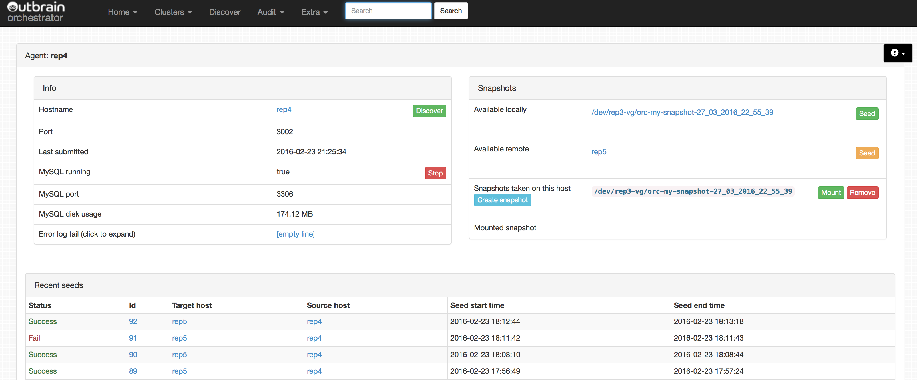 Orchestrator and Orchestrator-agent together give us a useful platform to manage our topology and deploy MySQL data files to the new servers, or re-sync old ones.