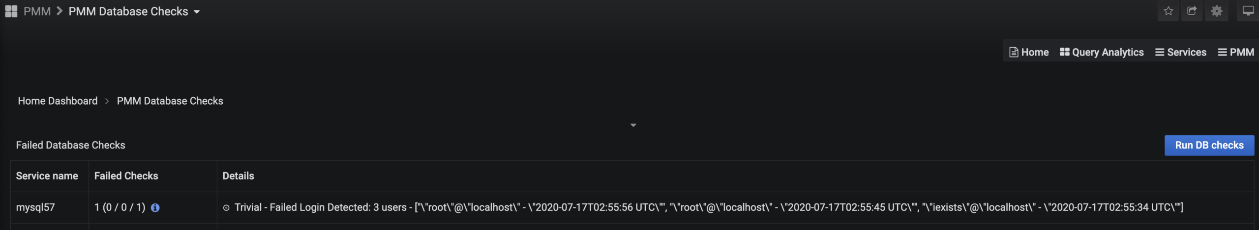 We are ready to test the check and, in the next release of PMM, you’ll be able to click a button on the Check Results page to run the checks immediately.