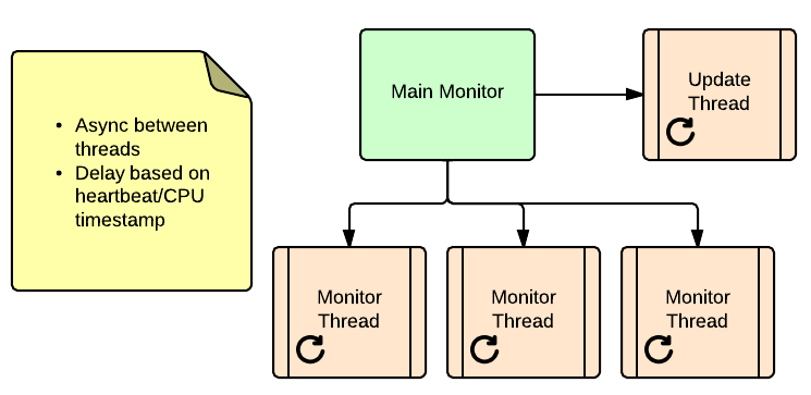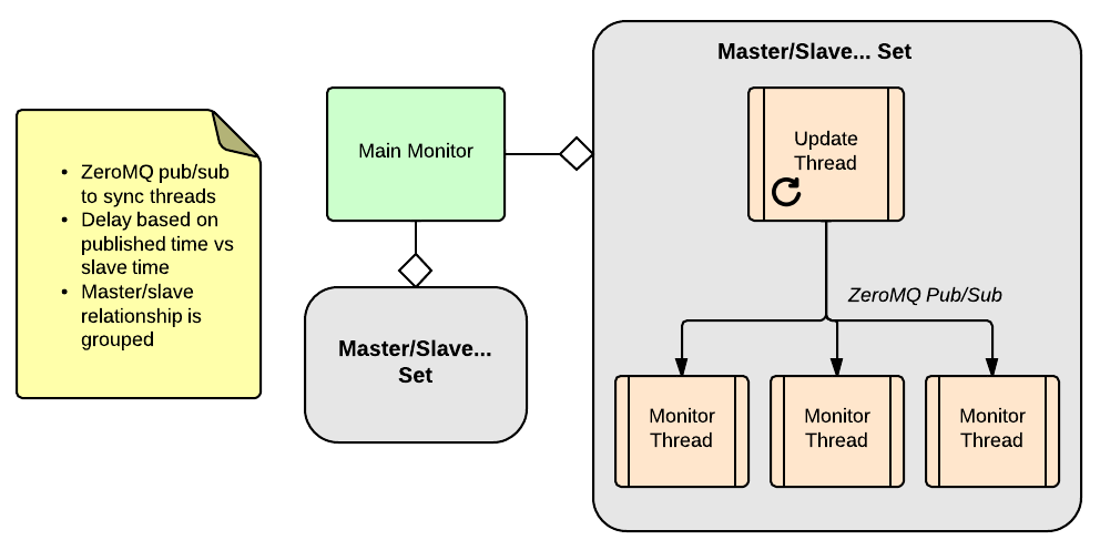 Based on this analysis, we opted to tweak the process and use a broadcast model to keep the monitor threads in sync. For this, I chose to use ZeroMQ for the following reasons: