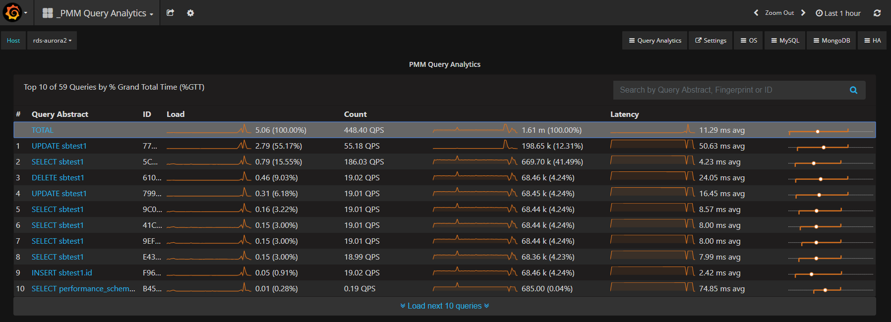 Another advantage of the Metrics Monitor dashboard integration is that the QAN inherits the host selector from Grafana, which supports partial string matching. This makes it simpler to find the host you’re searching for if you have more than a handful of instances: