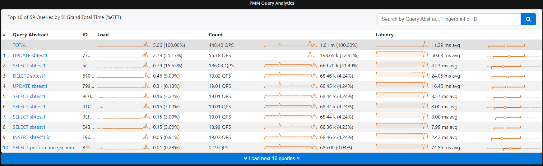 Last but not least is the ability to toggle between the default dark interface and the optional white. Look for the small lightbulb icon at the bottom left of any QAN screen (Percona Monitoring and Management 1.5 QAN 6) and give it a try!