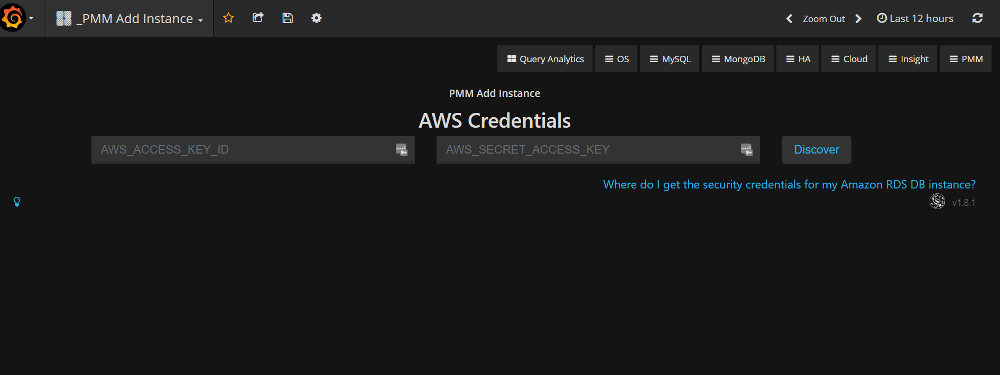 mongodb_upvariable for the MongoDB Overview dashboard to identify if a host is MongoDB. - PMM-1788: AWS Credentials form changes