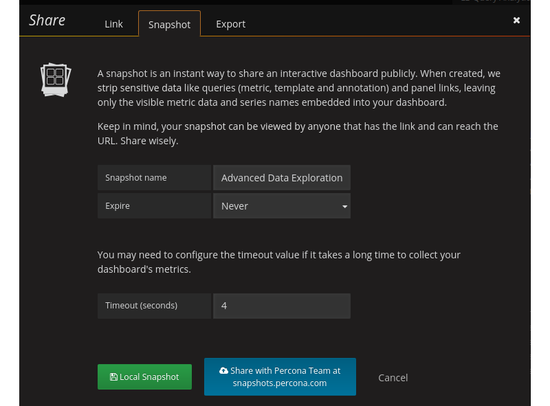 - Percona Snapshot Server: If you are a Percona customer you can now securely share your dashboards with Percona Engineers.