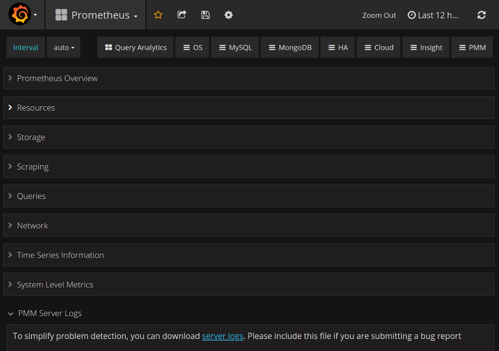 In this release, the logs from PMM Server can be exported using single button-click, avoiding the need to log in manually to the docker container. This simplifies the troubleshooting process of a PMM Server, and especially for Percona customers, this feature will provide a more consistent data gathering task that you will perform on behalf of requests from Percona Engineers.