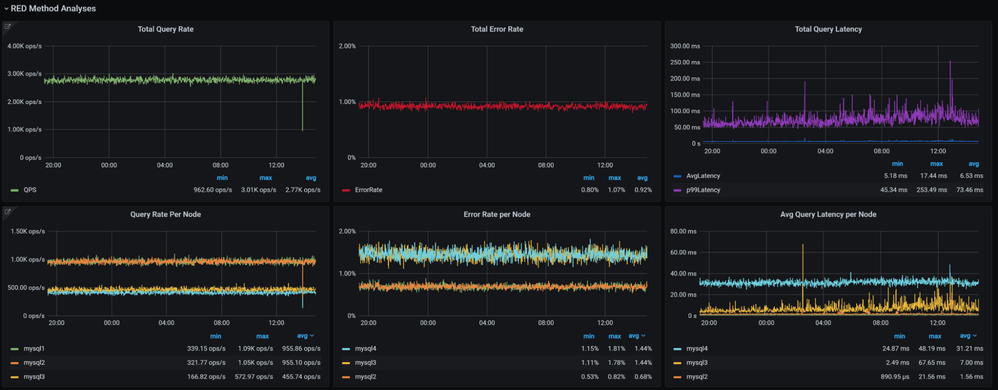 Want to apply the RED (Rate-Errors-Duration) method to MySQL? Check out this dashboard, and check out RED Method for MySQL Performance Analyses for more details.
