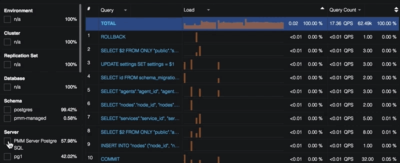 To better understand resource utilization on your PMM Server host, we’ve added a pmm-server entry in the OS, PostgreSQL, Prometheus, and Query Analytics Dashboards: