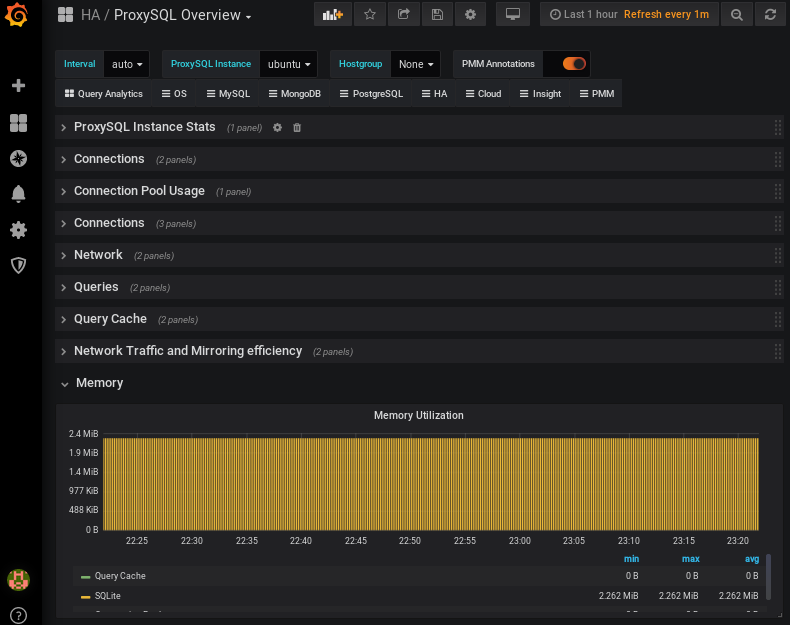 You can now add ProxySQL instance to PMM and take advantage of the ProxySQL Overview Dashboard, which resides under the HA group in the system menu.