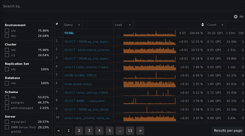 Percona Monitoring and Management (PMM) is a free and open-source platform for managing and monitoring MySQL®, MongoDB®, and PostgreSQL® performance. You can run PMM in your own environment for maximum security and reliability. It provides thorough time-based analysis for MySQL®, MongoDB®, and PostgreSQL® servers to ensure that your data works as efficiently as possible.