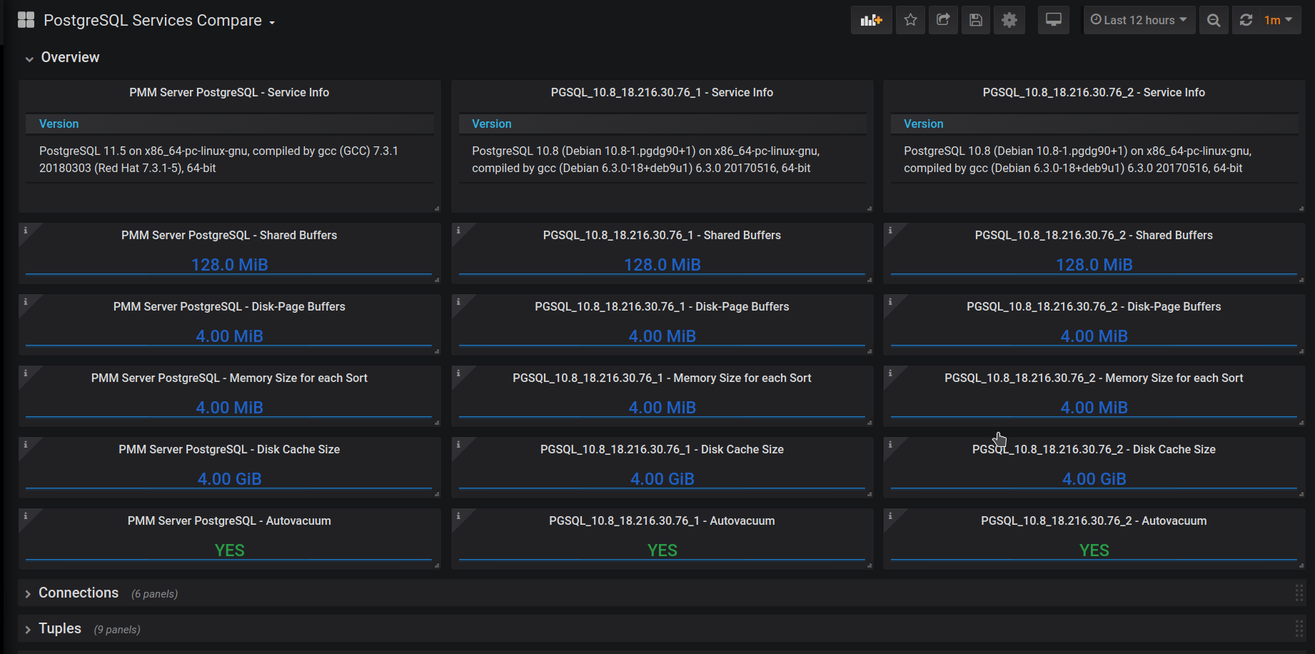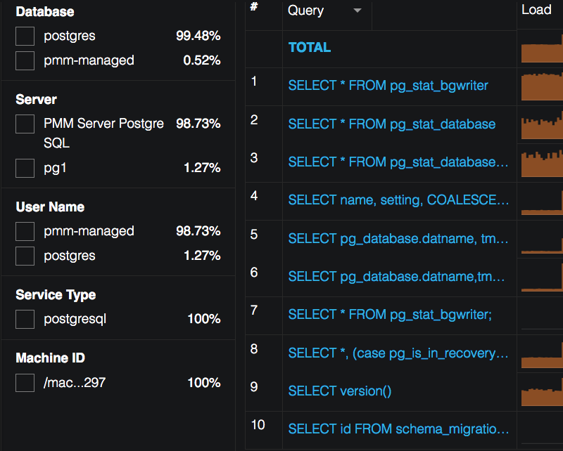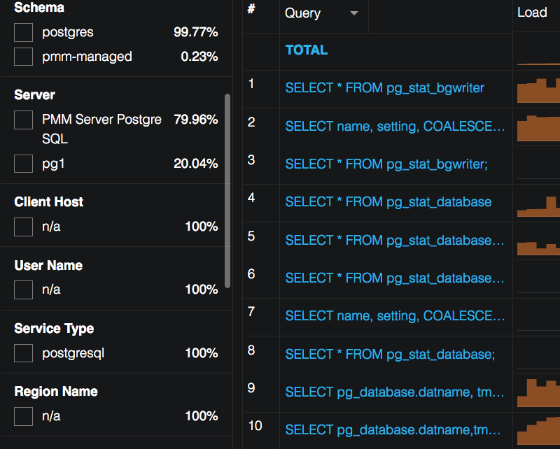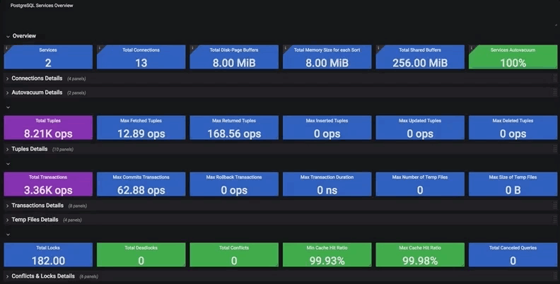 PostgreSQL Services Overview dashboard has got an update, showing metrics data split by services they are related to in addition to the total metrics data: