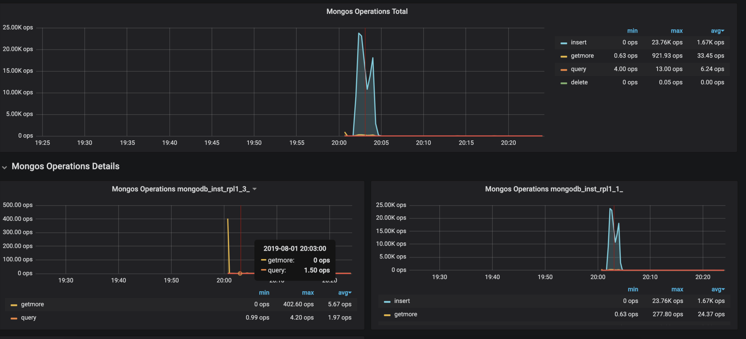 MongoDB Cluster Summary dashboard has got an update, showing metrics data split by services they are related to in addition to the total metrics data: