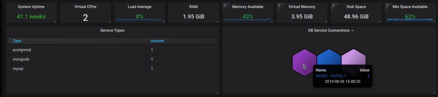 The System Overview Dashboard has obtained two new elements describing available service types and database service connections: