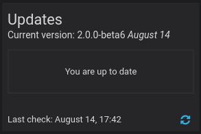 The current version and the available update can be seen on the Updates panel on the Home dashboard: