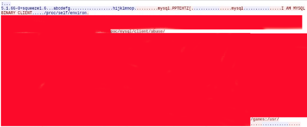 Now we jump to the malicious response packet, sent in reply to the earlier ‘Request Query’; which through legitimate use of SQL where LOCAL INFILE is issued this request packet would be the expected response from the ‘server’. In this case however the ‘server’ is requesting the file: /proc/self/environ this file can contain a wealth of information including anything you may have stored in an environment variable, in practise this can be set to any full filepath.
