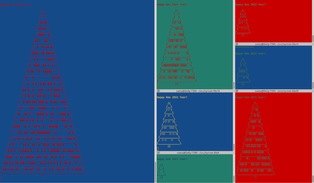 $ for i in `seq 1 1 1000`; do mysql ny_tree -e "select '\nHappy New 2022 Year!', ny_tree(12, '⚝')" --vertical --skip-column-names -s; sleep 1; done |